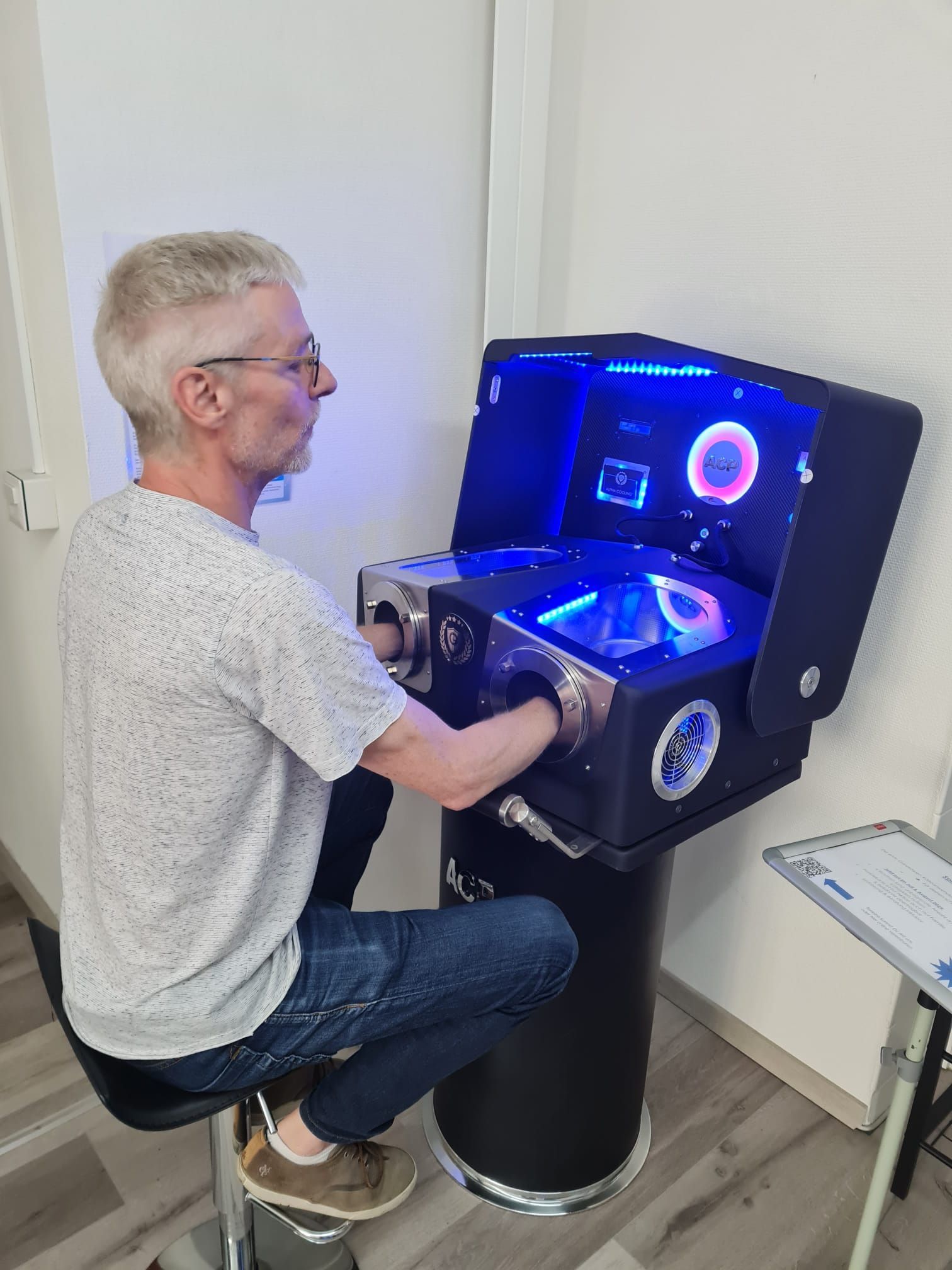 ❓Wozu brauche ich Kältetherapie mit Alpha Cooling Professional? Unser ACP hilft dir in erster Linie, Schmerzen zu lindern. Als positiver Nebeneffekt kann es sein, dass du dich z.B. nach einem FitnesstrainingMedical Fitness Training schneller und besser erholst. Andere mögliche Nebeneffekte können sein: Besserer Schlaf Weniger spürbare Verspannungen Schnellere Regeneration nach dem Sport Für noch mehr positive Nebeneffekte klicke hier 🤔 Was passiert mit mir, wenn ich eine Kältetherapie am ACP mache? Über deine Hände zirkuliert das auf 4°C heruntergekühlte Blut im ganzen Körper – und wirkt vom kleinen Finger bis in den grossen Zeh – obwohl du einfach nur da sitzt! Der Kältereiz in deinen Händen hemmt Schmerzsignale, setzt Glückshormone frei und ist so bei zahlreichen Krankheitsbildern einsetzbar: Long Covid Arthrose Rückenschmerzen Menstruationsbeschwerden Sportverletzungen Muskelkater Allgemeine Trägheit Möchtest du noch detailliertere Informationen? Hier geht es zur offiziellen Website von Alpha Cooling Professional: https://www.alphacooling.ch/ 🧘🏻Wie läuft diese Kältetherapie bei GYM medico Basel ab? Eines vorweg: Wir wissen, dass diese Art der Kältetherapie Fragen aufwerfen kann. Deshalb bieten wir dir bei uns im GYM medico in Basel eine kostenlose Kältetherapie-Sitzung zum Testen an. Denn: Wenn du es selbst erlebst und spürst, kannst du besser einschätzen, was mit dir passiert. Für alle Fragen ist immer ein:e Expert:in für Kältetherapie unseres Teams bei dir dabei. Erfahrungsgemäss tritt eine Wirkung bei den meisten unserer Kund:innen sofort oder innerhalb einer Stunde ein – häufig mit verbesserter Schlafqualität in der gleichen Nacht. 🎯Fazit Kälte kann deinem Körper bei verschiedenen Schmerzen gut tun – bei unserer sanften Methode im GYM medico Basel auch ganz ohne Ausziehen und Frieren. Bist du neugierig? Möchtest du alle Vorteile der Kältetherapie bei GYM medico Basel selber erleben? Und das OHNE Bibbern? Dann buche jetzt deinen ACP-Probetermin direkt per Telefon , E-Mail oder Kontaktformular: